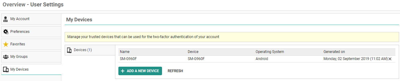 two-factor authentication through an authenticator appYou can link additional devices by clicking Add a new device.