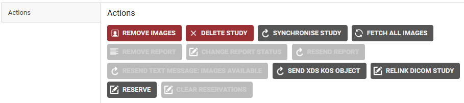 Synchronise study | Synchronises the exam on DeepUnity PACSonWEB Core with the local PACS system. • Can only be used when images are sent using the PACS Push mechanism. • Optional: Available if the radiology department has fetch enabled. |